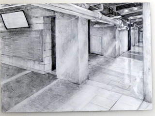 ![]() 55/58年館1階廊下 -デッサン 菅原 真由(在学1年生・55/58年館デッサンをする会) |