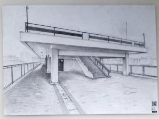 ![]() 55/58年館屋上ペントハウス -デッサン 中田 宗一郎(在学1年生・55/58年館デッサンをする会) |