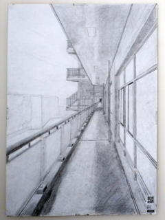 ![]() 55/58年館5階南バルコニー -デッサン 中谷 司(在学1年生・55/58年館デッサンをする会) |