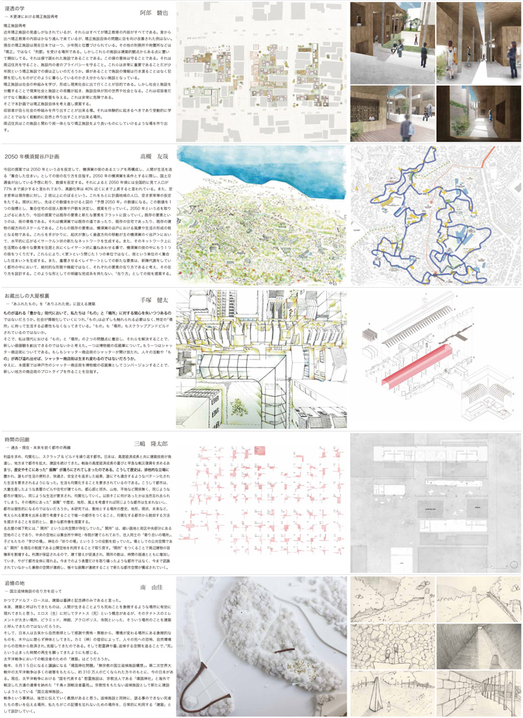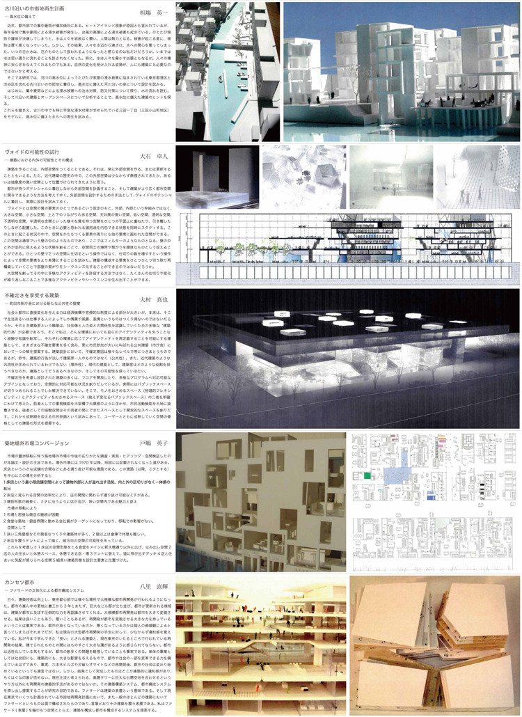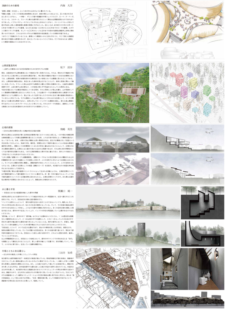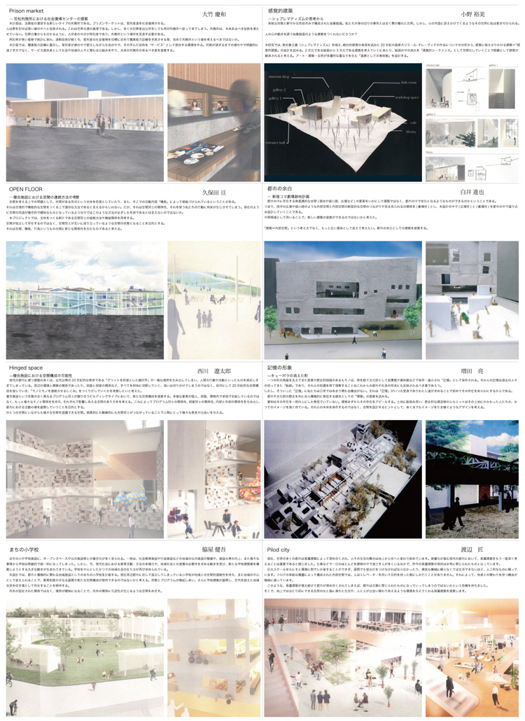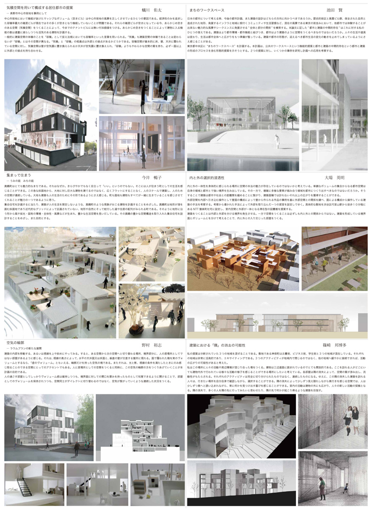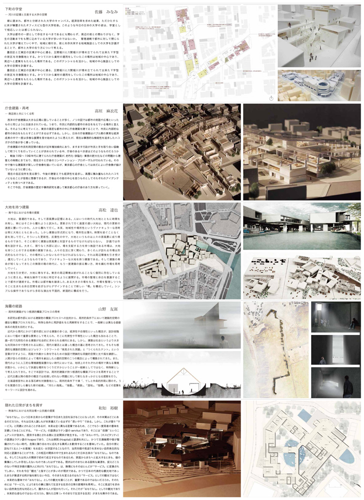 学部1年生→まだよくわからない建築とは何なのか、学部2年生→スタジオでの悩み、学部3年生→進学か就職か、学部4年生→卒業設計はどう取り組むべきか、院生→実務の仕事とは?大江宏賞へのモチベーションとは?etc...