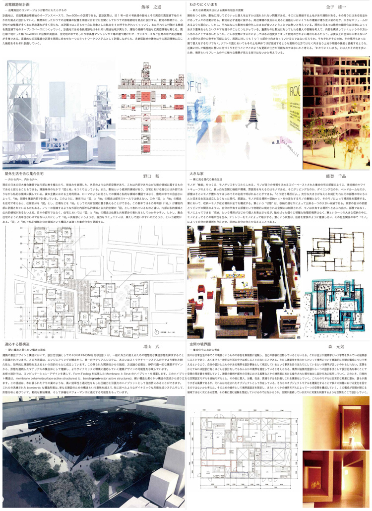 そんな先輩たちが学生時代に挑んだ大江賞とはどのようなものだったのか、「挑んだ時の体験談」「卒業後の進路や仕事の話」「建築に関わる社会的側面」等など。今後の進路や学生時代の過ごし方など、いろいろなヒントが聞ける気軽なイベントです。