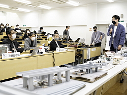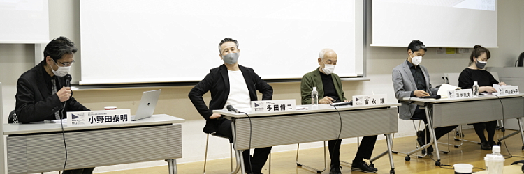 第17回を迎えた大江宏賞公開講評審査会は、2021年3月20日(土)法政大学市谷田町校舎5階マルチメディアホールにて開催されました。コロナ禍に対応し、聴講は事前予約制のZOOM視聴となりました。 審査は今回より、外部の特別審査員2名とOB審査員2名とし、2020年度より修士設計の指導にあたられている小野田泰明大学院客員教授が審査委員長として計5名で行われました。学生は、20名参加の学内審査から選ばれた5名がエントリーしました。個々の10分の発表・質疑応答ののち、場外廊下でのフリーなパネルセッション、全体質疑・議論を経て審査員5名の第2選までの投票および選案への講評が示されました。 相模川河川敷の高速高架下にネットワーク的にフォリーを配した佐藤素春さん、コロナ禍に即応した独り空間によるコミュニティエリアの形成を試みた阿部夏実さん、時間を費やした都市的・建築的断片収集のフィールドワークから考察した事象を一冊の書籍として提示した渡辺道也さんに票が入り、その中多くの1位票を集めた渡辺道也さんが見事大江宏賞を受賞しました。具体提案の手前ではあるものの、身体的作業密度・洞察の構築性・創作への真摯な問題意識などが各審査員に高く評価された結果でした。 コロナ禍にみまわれた状況の中、例年と同水準の模型提示・大型パネルなどでの5名のプレゼは、困難な状況の克服のエネルギーを感じるものであり、また対面での講評実施に教育現場の熱を感じる時間でもあったことを2020年度大江宏賞公開講評審査会の全体印象として書き添えておきます。 なお、この日の5名の候補者は発表順に以下の通りでした。 1. 石 捷倫 「アクティビティとしての多義空間」 (下吹越研究室) 2. 佐藤 素春 「戦略的スペクタクル ー郊外から考える都市の能動的更新手法ー」 (北山研究室) 3. 阿部 夏実 「独りのための空間 ー社会的孤立と地域の接点となる居場所の構築ー」(渡辺研究室) 4. 畠山 かおり「弔賑水景ー両国の歴史を刻む水辺空間ー」 (下吹越研究室) 5. 渡辺 道也 「空間遺棄時代のフラグメンツ ー日本行脚2019にみる都市的創成物が織りなす風景記」(北山研究室)